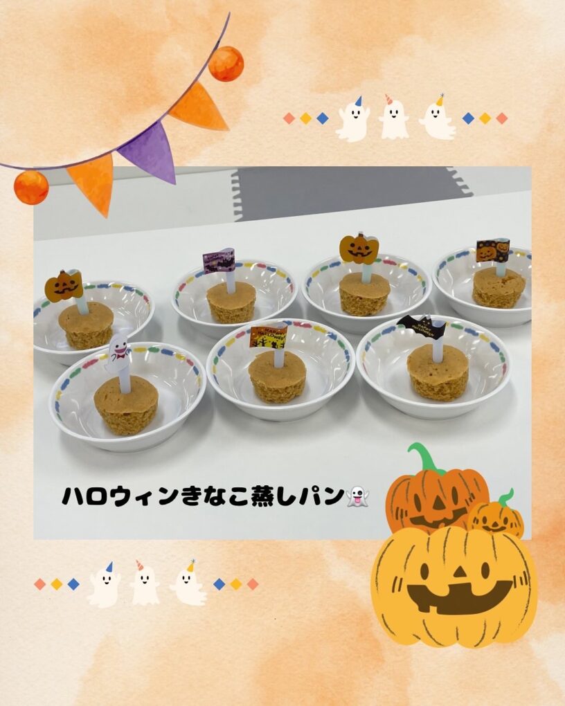 今日の朝おやつはみんなでクッキング👩🏻🍳🌟「ハロウィンきなこ蒸しパン」を作りました👻♡ボウルに粉と牛乳をいれ、順番に混ぜ混ぜしたり実際に蒸しパンが膨らむ瞬間を近くでみたり👀✨膨らむ瞬間は、みんな興味津々🥺!!開けた途端にきなこのいい匂いがして、「あまーい!!」と思わず声を出してしまう子どもたちでした🤭💞自分たちで作った蒸しパンは特別おいしかったようでみんなあっという間の完食でした😋👏🏻Insta